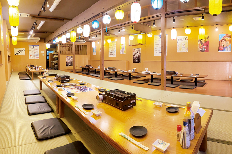 海鮮を心ゆくまで堪能できる「海鮮食べ放題 小野田水産」は、 最大60人収容の宴会場を完備。海の幸を囲んで楽しいひとときが過ごせます。
