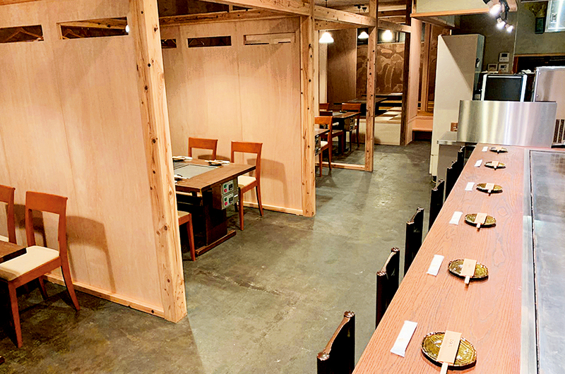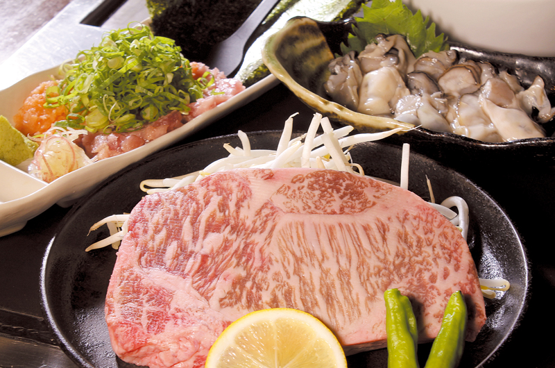 同店では、飲み放題込みの宴会コースを注文すると、冬季限定で今しか味わえない広島県産牡蠣焼きがメニューに加わります。コースの種類は山口県産極上牛フィレステーキ付き究極壱○弐コース8,000円(10品)、山口県産阿知須牛サーロインステーキ付き贅沢コース6,000円(9品)、鉄板コース5,000円(9品)があります。コースはいずれも4名様以上、前日までの要予約。貸切も対応しているのでお気軽にご相談ください。
