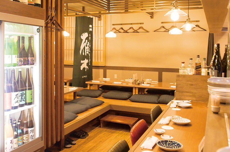 店内は掘りごたつ席が中心の全35席。落ち着いて腰を据えて飲める雰囲気。仲間と杯を交わしながら、料理と酒を交わすのはもちろん、1人でカウンターに座ってじっくり楽しむのもおすすめです。