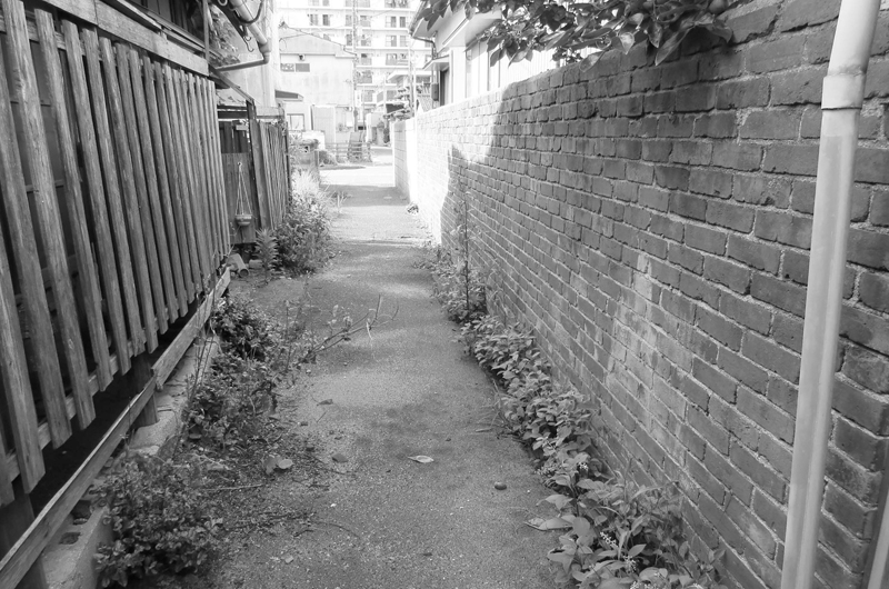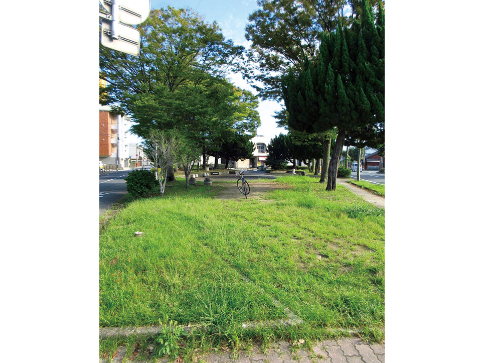私はこの近くで生まれました。家の前の道 =背景写真= は未舗装路で、子どもたちはまだ交通量の少ない道路や三角広場で遊んでいました。幼少期から内向的だった私は近所の子どもの輪に入っていけず、一人でブランコを漕いでいたのを思い出します。現在の活動を始めた十数年前にここを再訪したとき、土の地面が殆どなくタイルに置き換わっているのを見てがっかりしたものでした。しかし今ではここが三角広場のまま残っていることを嬉しく思います。