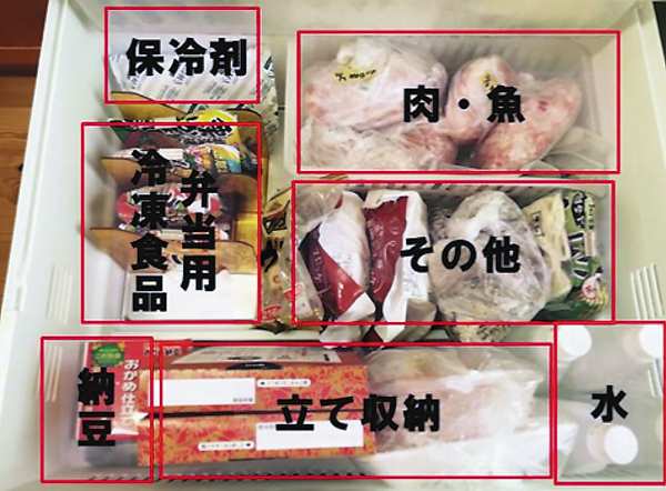 冷凍庫の方ではなるべく食品は重ねずに立てて収納することを心がけましょう。開け閉めの時間も短くなって電気代もムダになりません。冷凍食品のように自立しづらいものは、ブックスタンドなどを使って立てます。そうすることで在庫管理も楽になります。お肉やお魚などの食材のストックは少し大きめのカゴなどで場所を決めておくと探す手間も省けるほか、ストックの量を制限することもできて一石二鳥です。